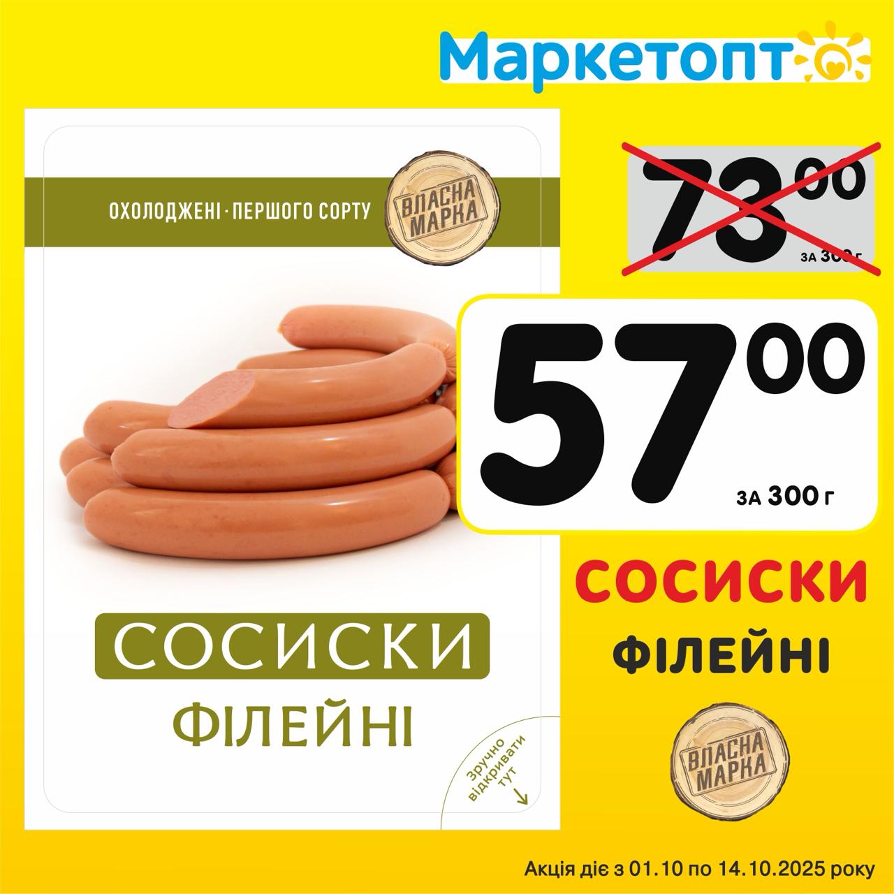 Спеціальні акційні пропозиції в супермаркетах Маркетопт для підписників в Телеграм з 01 до 14 жовтня 2025 року.