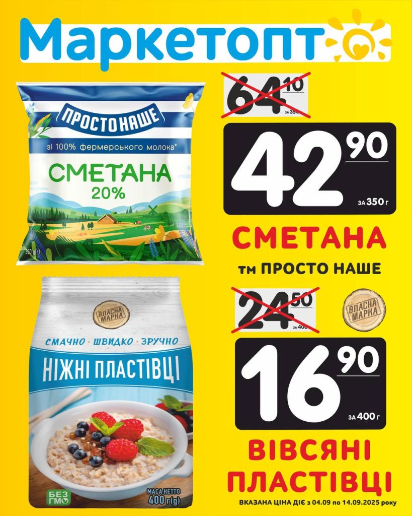 Акційні пропозиції в супермаркетах Маркетопт з 04 по 14 вересня 2025 року.