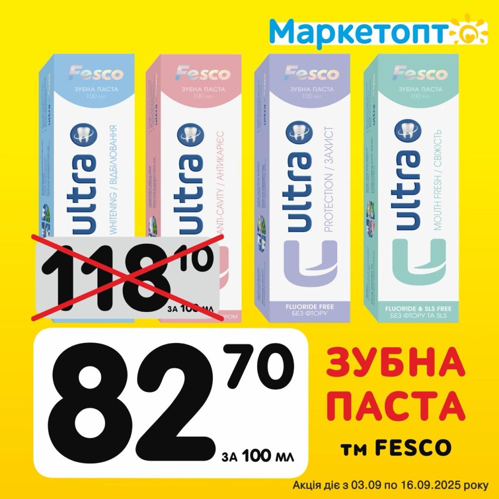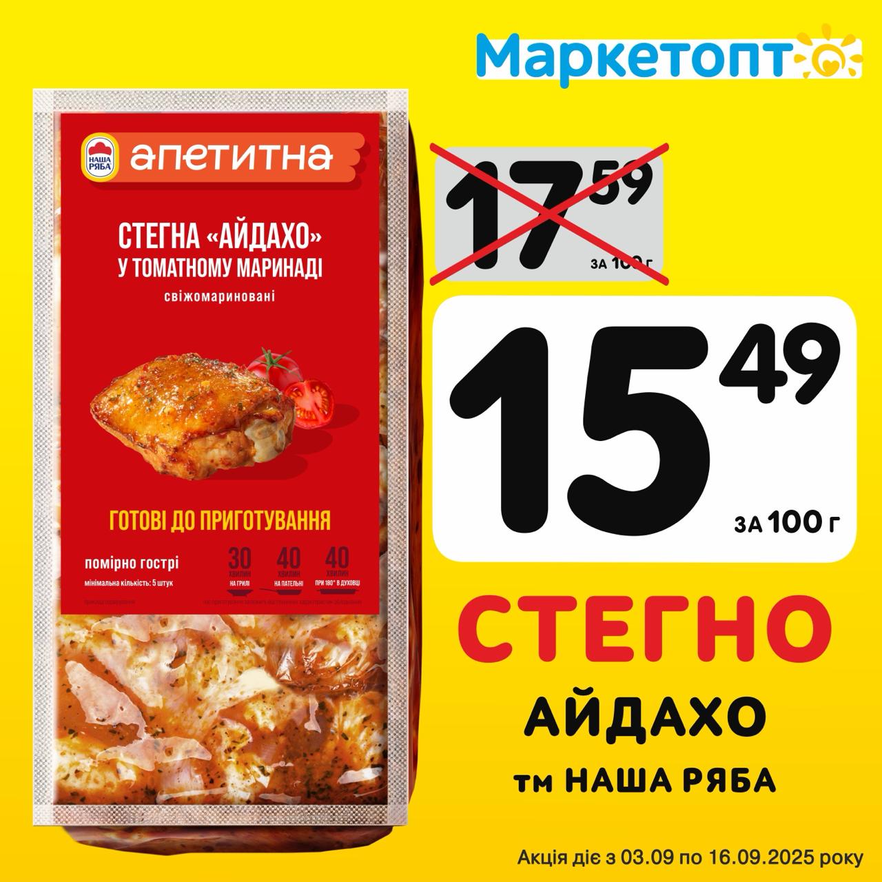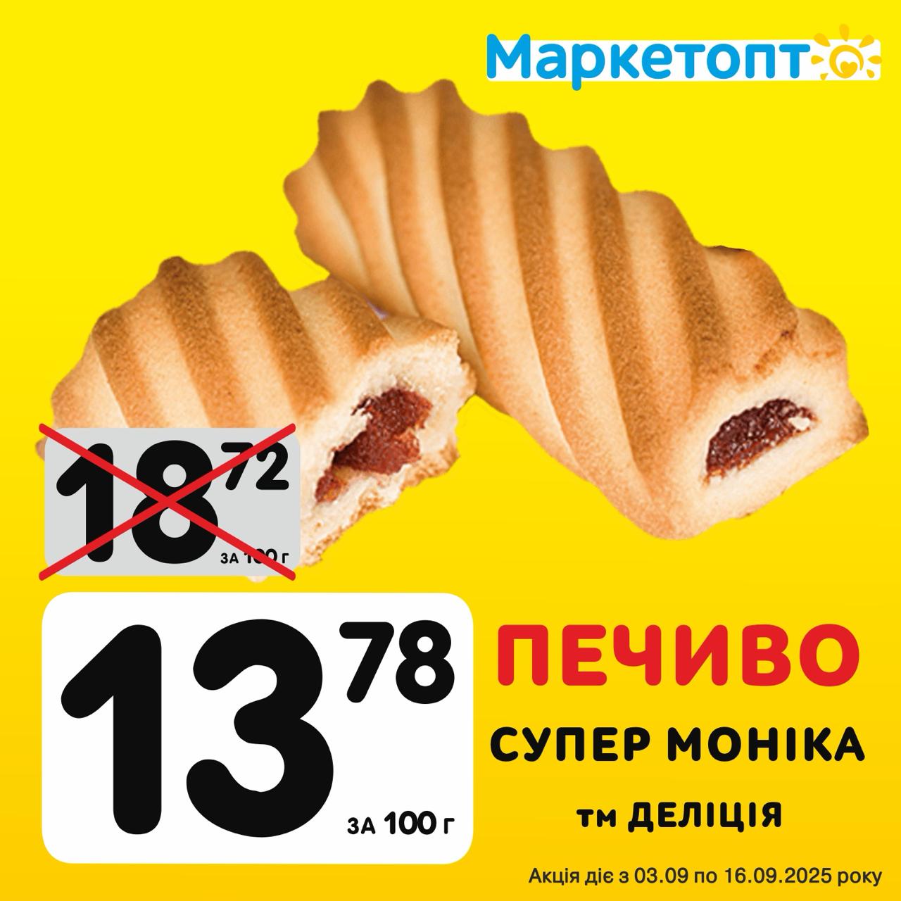 Спеціальні акційні пропозиції в супермаркетах Маркетопт для підписників в Телеграм з 03 до 16 вересня 2025 року.