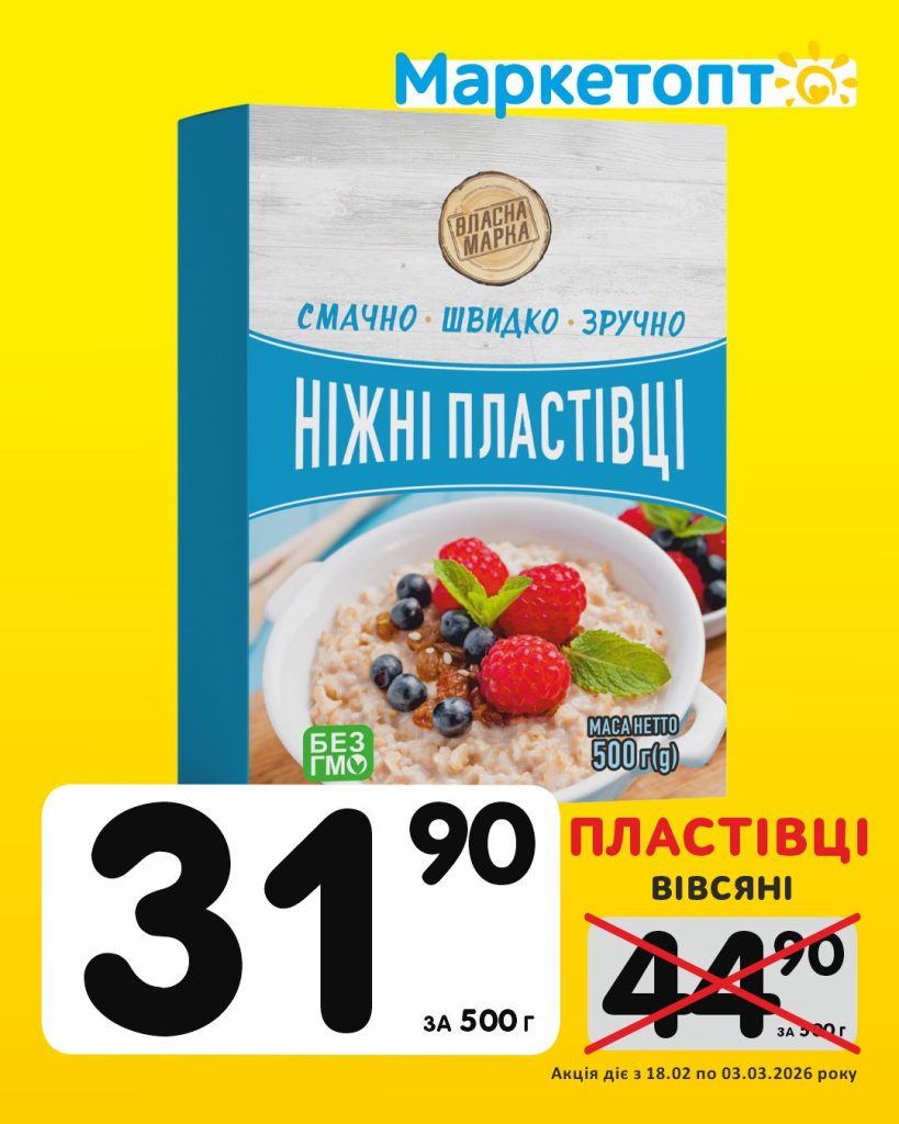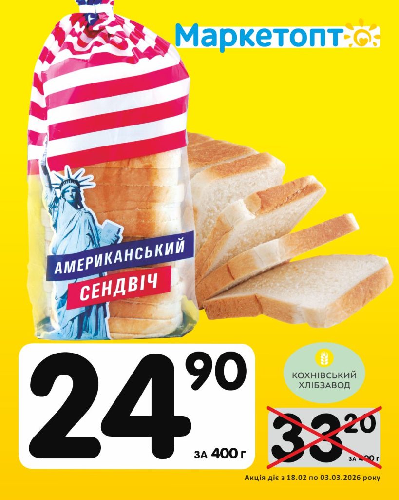 Спеціальні акційні пропозиції в супермаркетах Маркетопт для підписників в Телеграм з 18 лютого по 03 березня 2026 року.