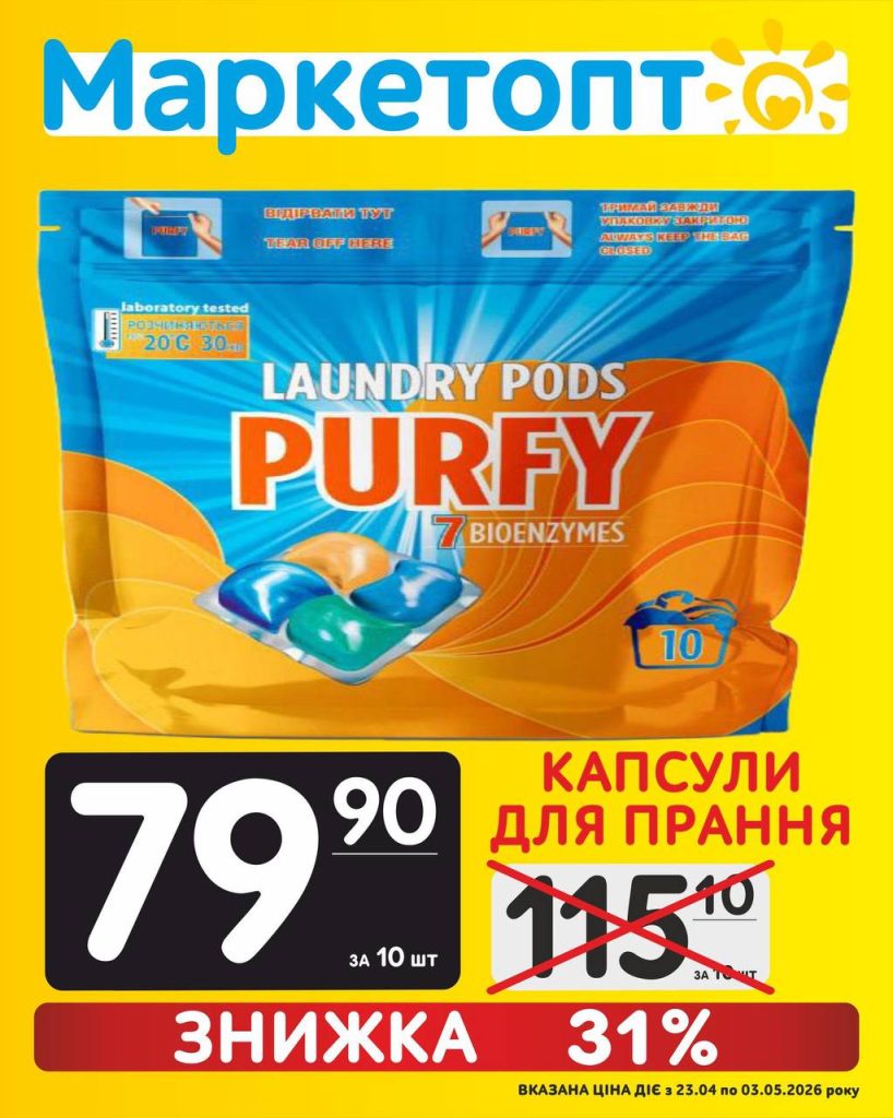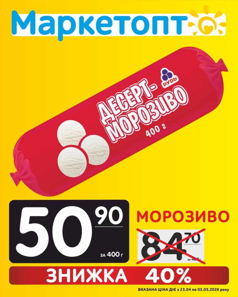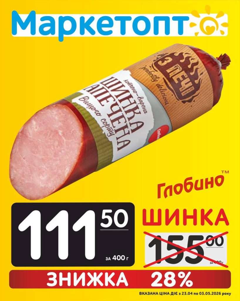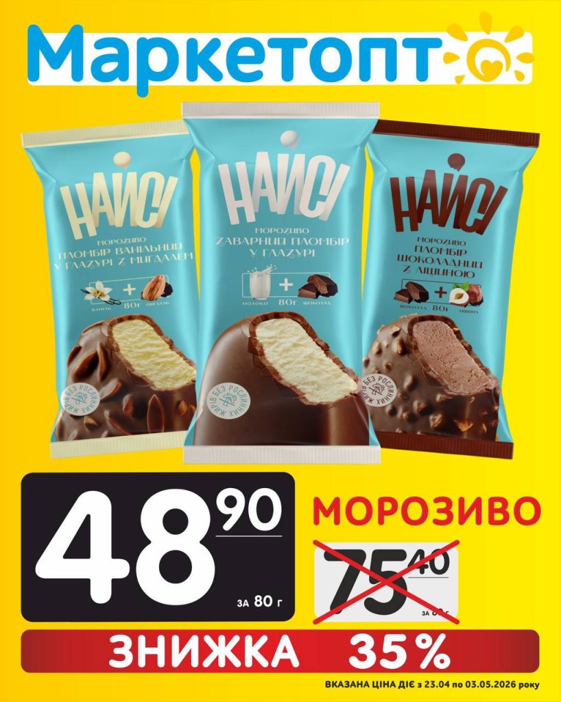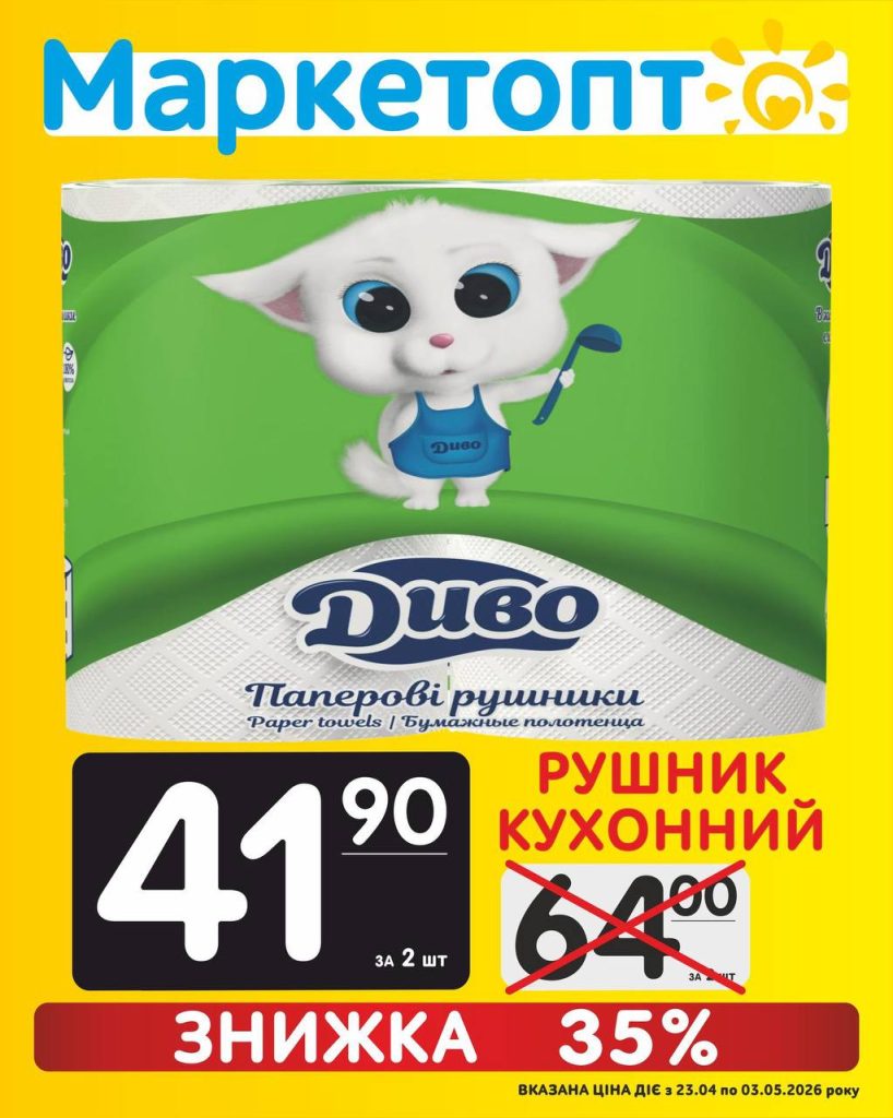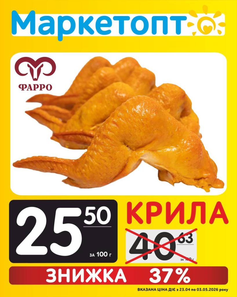 Акційні пропозиції в супермаркетах Маркетопт з 23 квітня по 03 травня 2026 року.