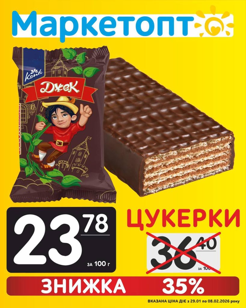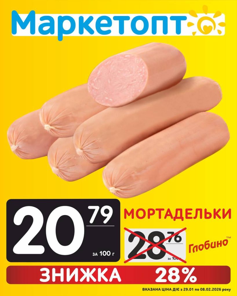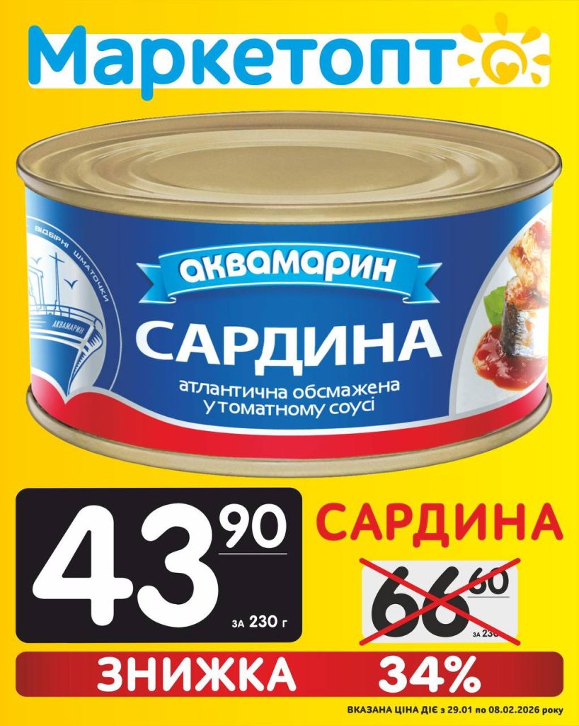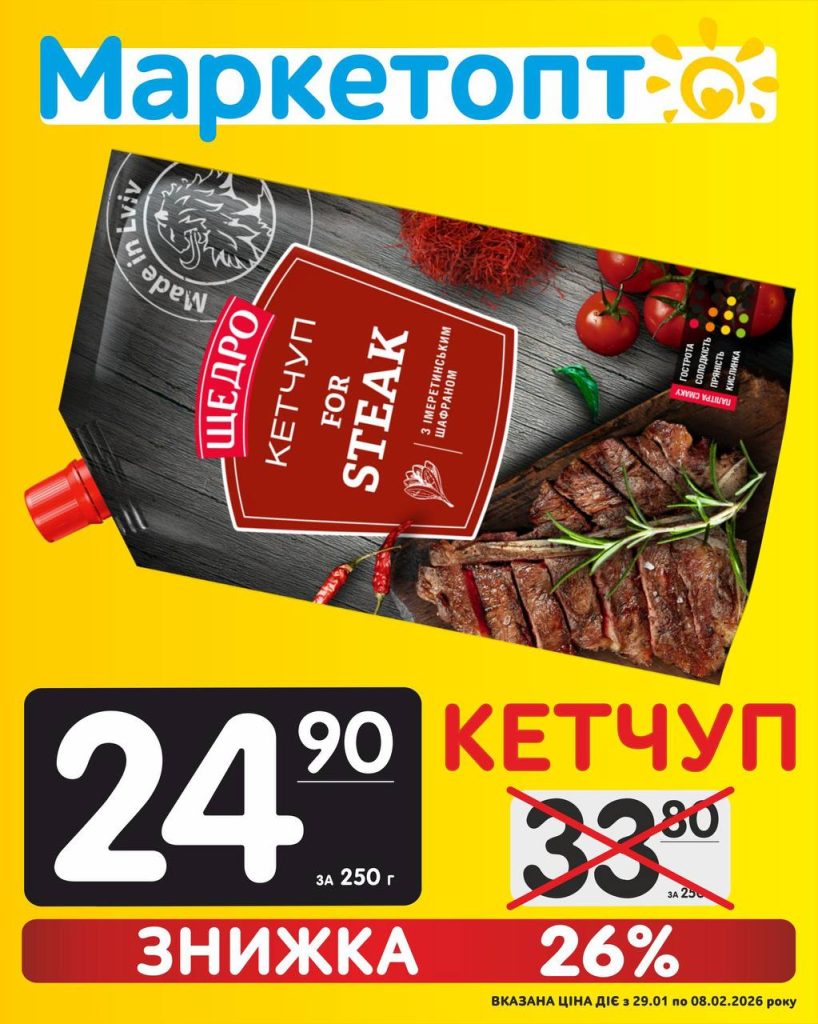 Акційні пропозиції в супермаркетах Маркетопт з 29 січня по 08 лютого 2026 року.
