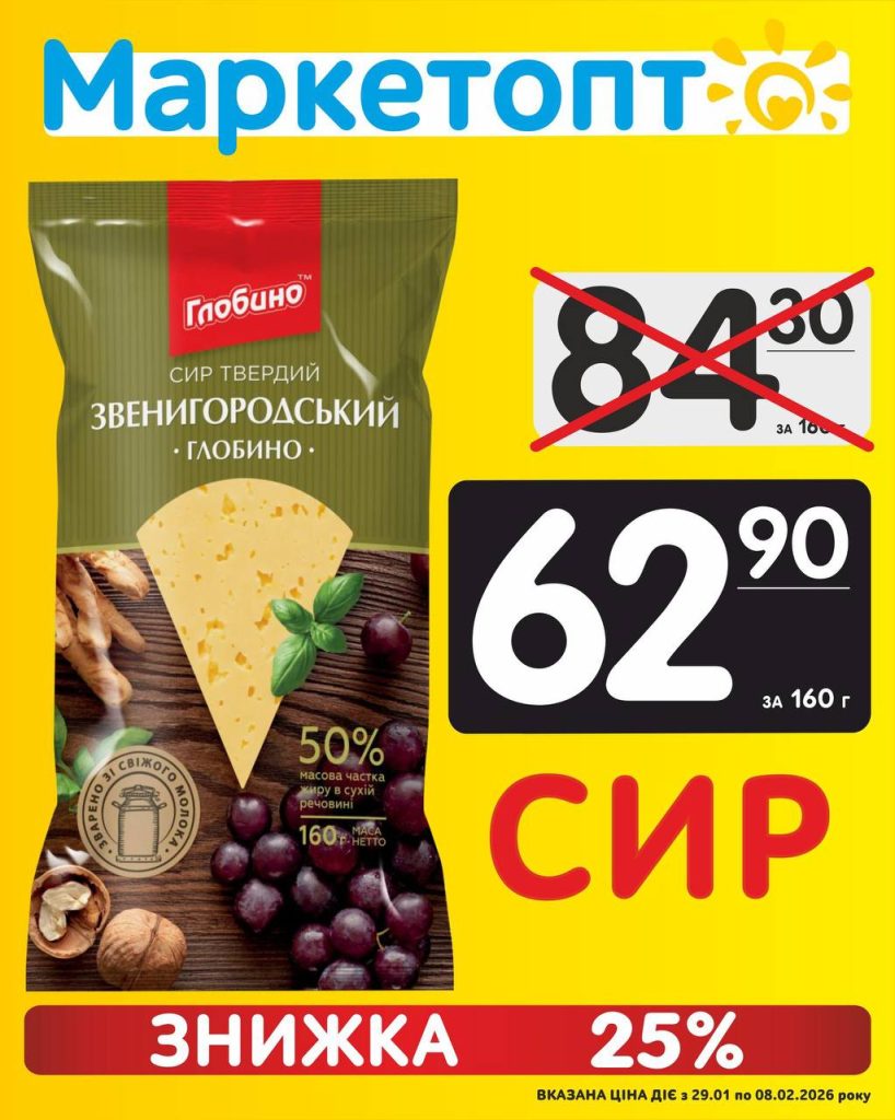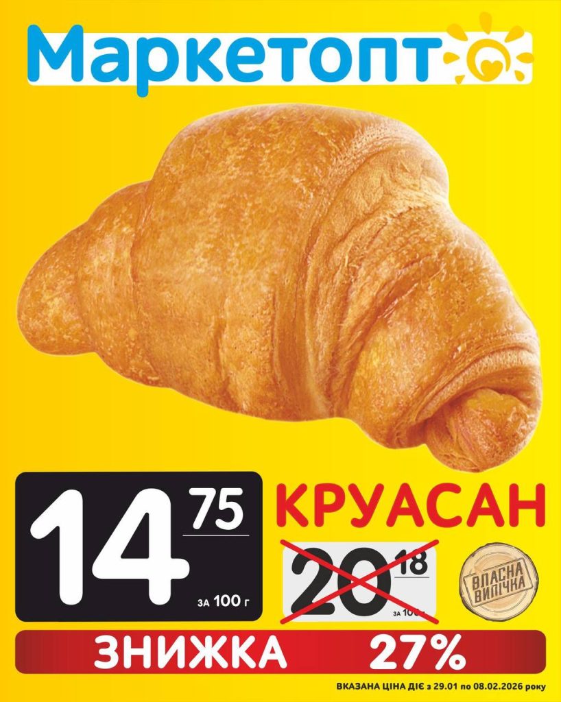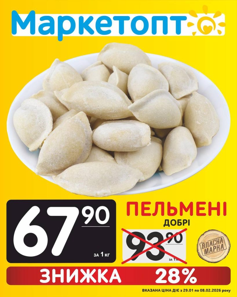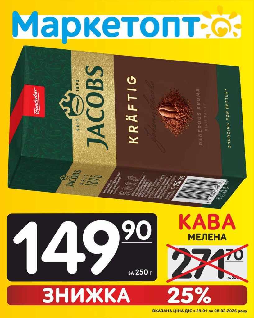 Акційні пропозиції в супермаркетах Маркетопт з 29 січня по 08 лютого 2026 року.