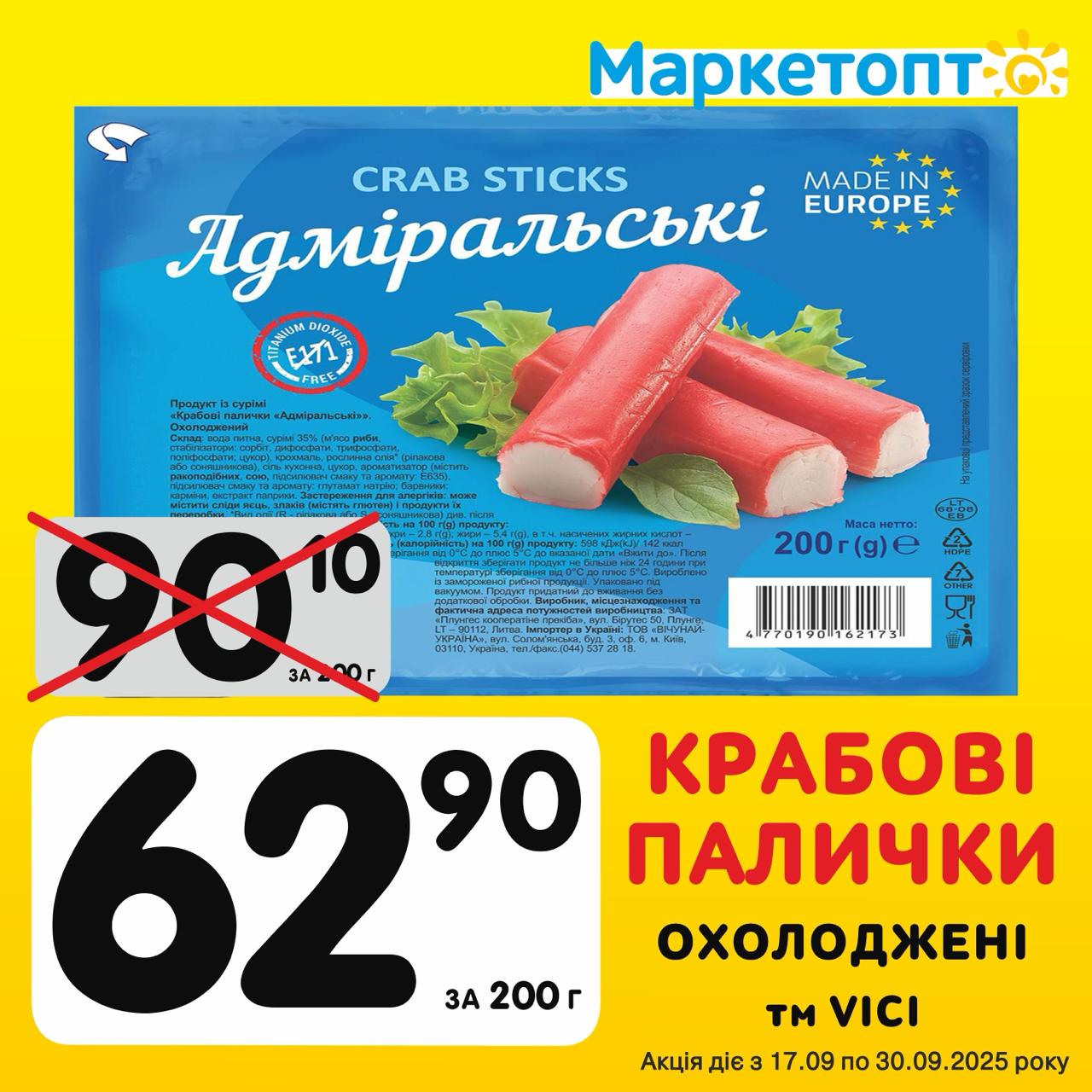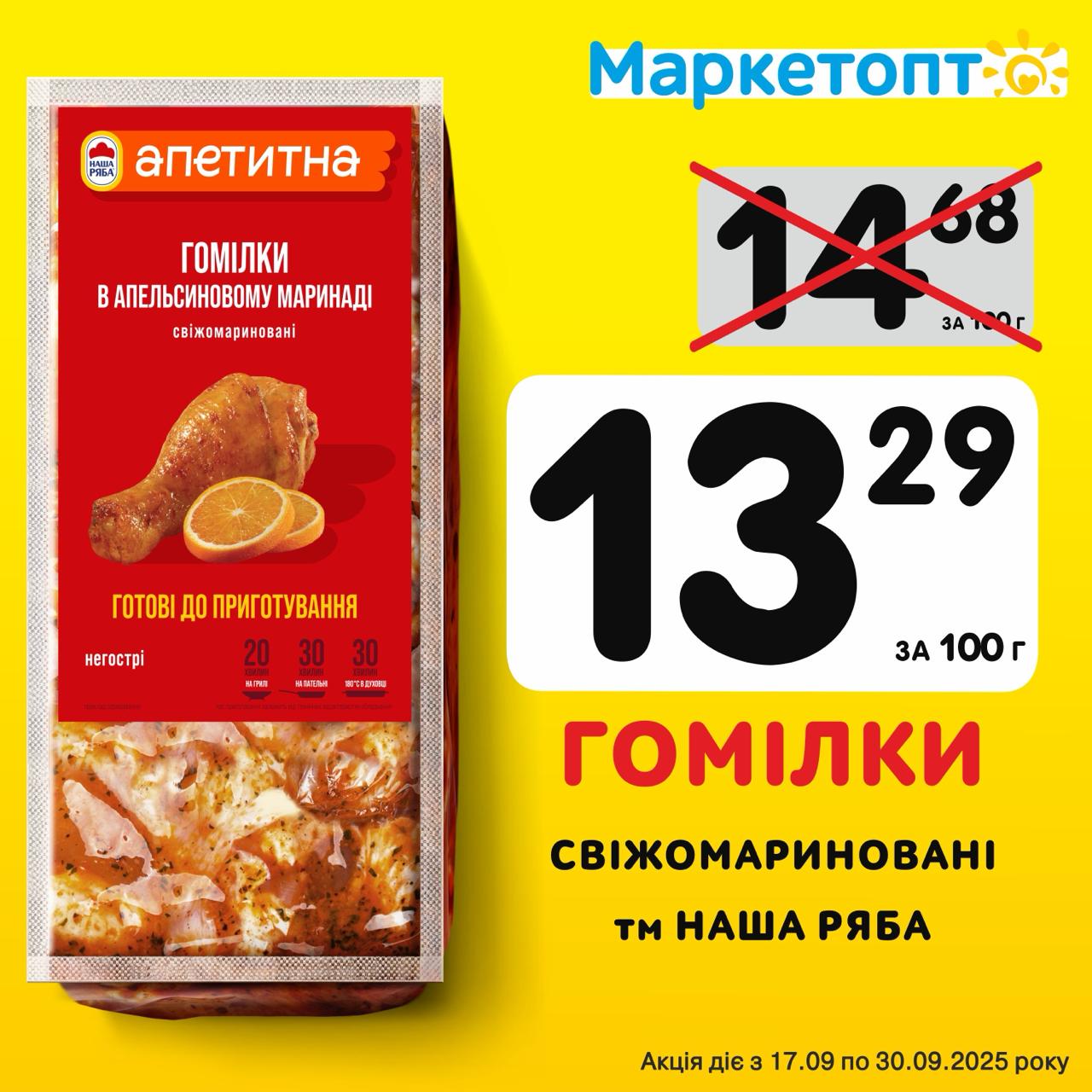 Спеціальні акційні пропозиції в супермаркетах Маркетопт для підписників в Телеграм з 17 до 30 вересня 2025 року.